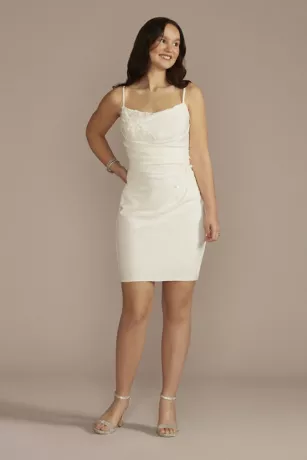 3D Floral Lace Applique Crepe Mini Dress