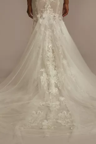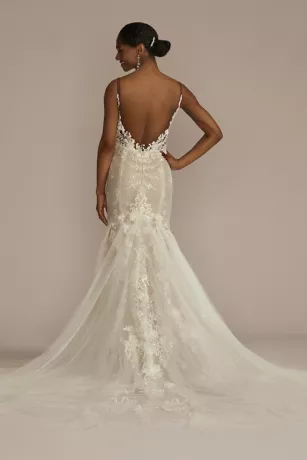 Beaded Lace 3D Floral Plunge Tulle Wedding Dress