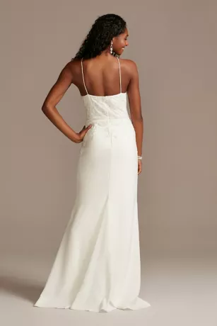 Simple yet undeniably elegant, this comfortable stretch crepe sheath dress is detailed with a spaghetti strap halter neckline and a figure-flattering beaded waistband.