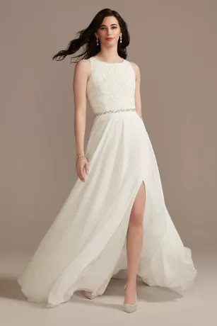 Beautifully simple and infinitely versatile, this sleeveless scoopneck wedding crop top is adorned with a leafy beaded design. Pair it with a long skirt for a stunning look.