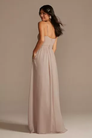 You’ll give off boho vibes in this chiffon bridesmaid dress with a surplice V-neck bodice and pretty ruffles.