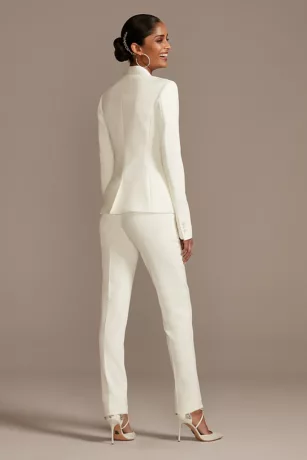 A satin shawl lapel and satin buttons at the sleeves lend this modern fitted suit jacket a soft luster, while elegant flap pockets complete the look.