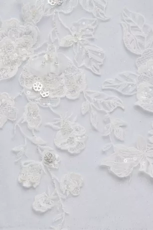 Adorn yourself in the luxurious lace appliques that decorate this full, glitter tulle-skirt wedding dress. For the perfect petal placement, our artisans spend one hour setting and sewing each 3D floral detail. Intricate beading at the corset-like bodice and spaghetti straps complete the overall opulence of the look, for a truly unforgettable gown.