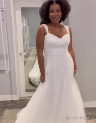 Your wedding ensemble should make you feel your most beautiful, and this lace tank sleeve gown with a beaded lace bodice doesn’t disappoint.