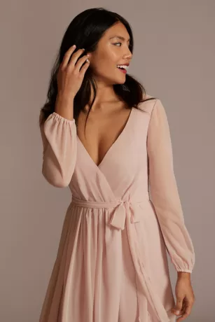 Long Sleeve Chiffon Bridesmaid Dress With Slit