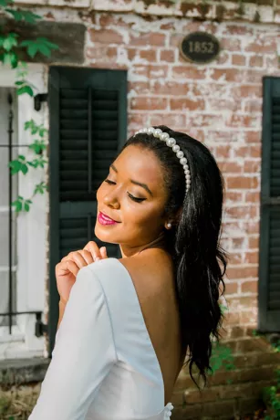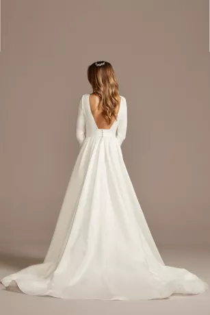 Low Back Mid-Sleeve Crepe And Satin Wedding Dress