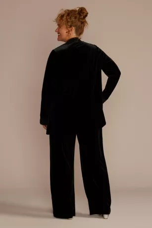 Nothing should ever dull mom’s sparkle! This sophisticated plus size three-piece pantsuit enhances her shine with a scoop neck sequin tank, soft velvet pants, and a matching long sleeve jacket.