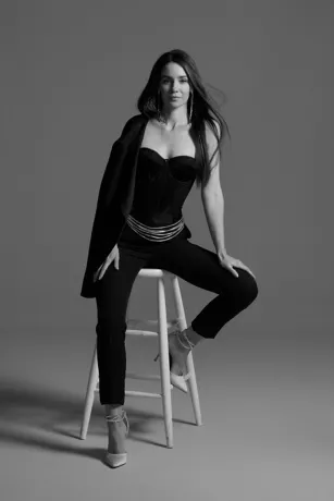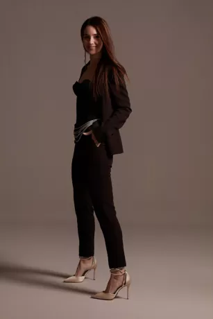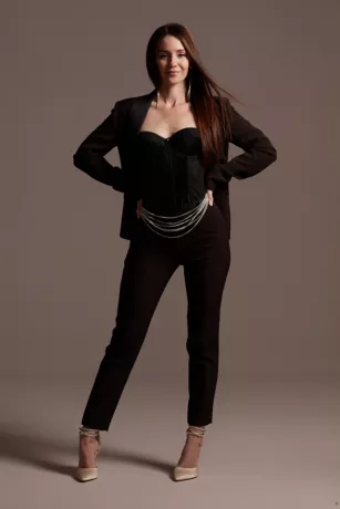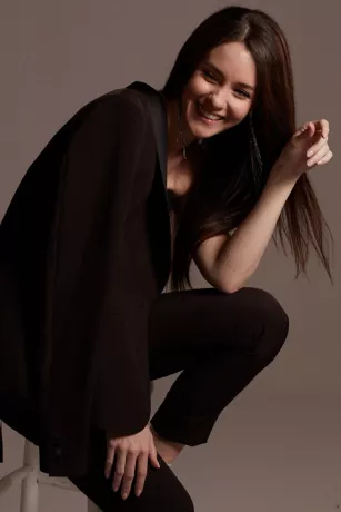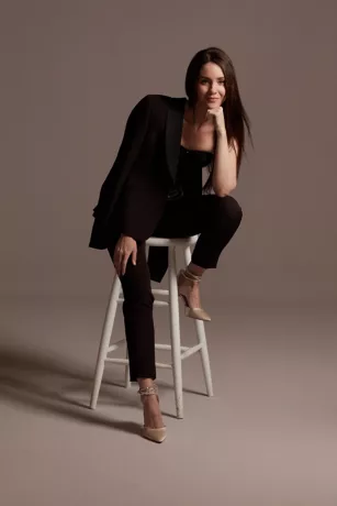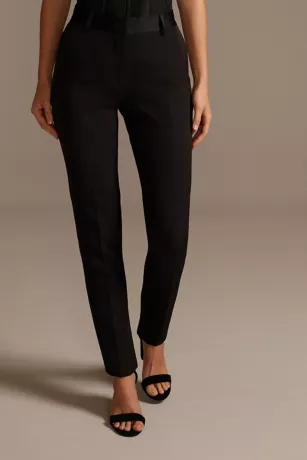 Satin Waistband Fitted Suit Pants
