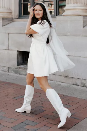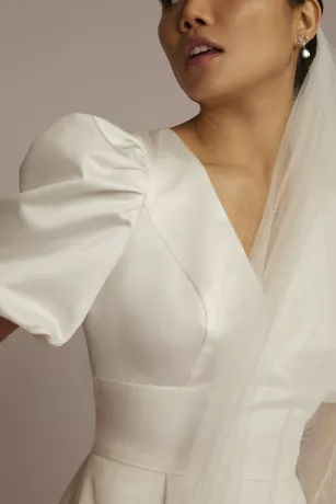 You’re guaranteed to wow at your bachelorette soiree or casual ceremony in this stunning satin dress. Puff sleeves balance a deep V-neck beautifully while simultaneously creating an hourglass look against the nipped waist and full skirt. Pockets ensure you’ll never be without your night-out essentials.