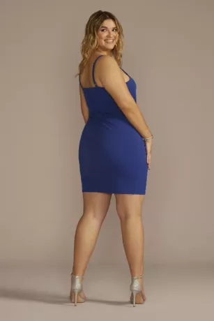 Short V-Neck Ruched Crepe Sheath Dress With Slit