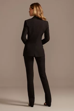 This sophisticated relaxed fit suit jacket is detailed with satin buttons at the sleeves, chic flap pockets, and a notched lapel.