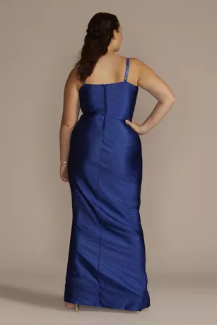 Stretch fabric turns this glitter knit dress into any dancing queen’s must-have. The perfectly draped bodice and thigh slit add beauty to the wrap-style silhouette, making a great choice for prom or any black tie affair.