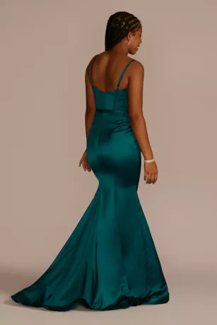 Spaghetti Strap Stretch Satin Corset Mermaid Dress