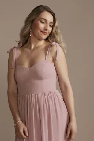 A versatile A-line bridesmaid dress with a flattering empire waist and smocked back. The cute tie straps let you personalize your fit.
