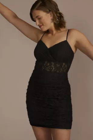 Show up to homecoming or your next big party like the bombshell you are! This bodycon mini dress is designed with a flirty illusion waist detail perfect for showing off the dainty lace fabric.
