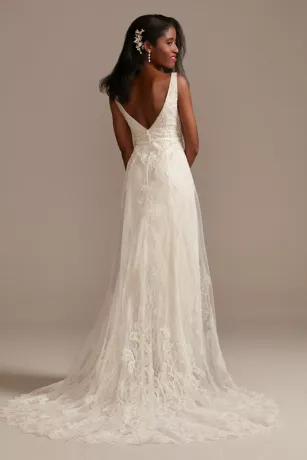 V-Neck Lace Plus Wedding Dress With Scallop Hem